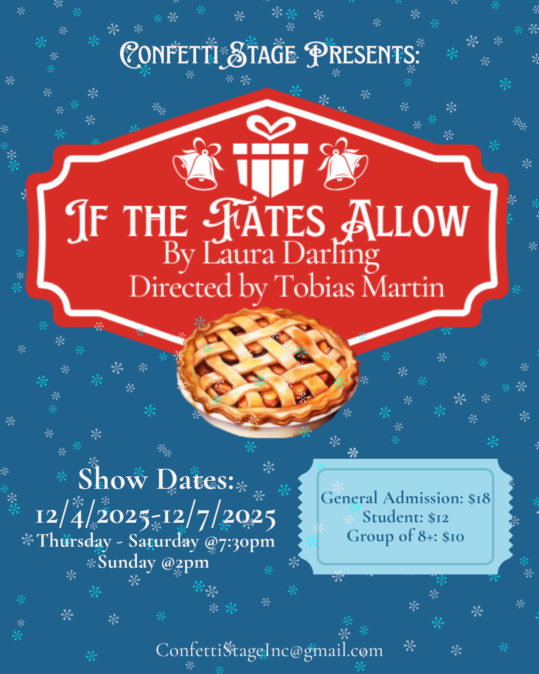 Feel free to contact Confetti Stage at confettistageinc@gmail.com with any questions.